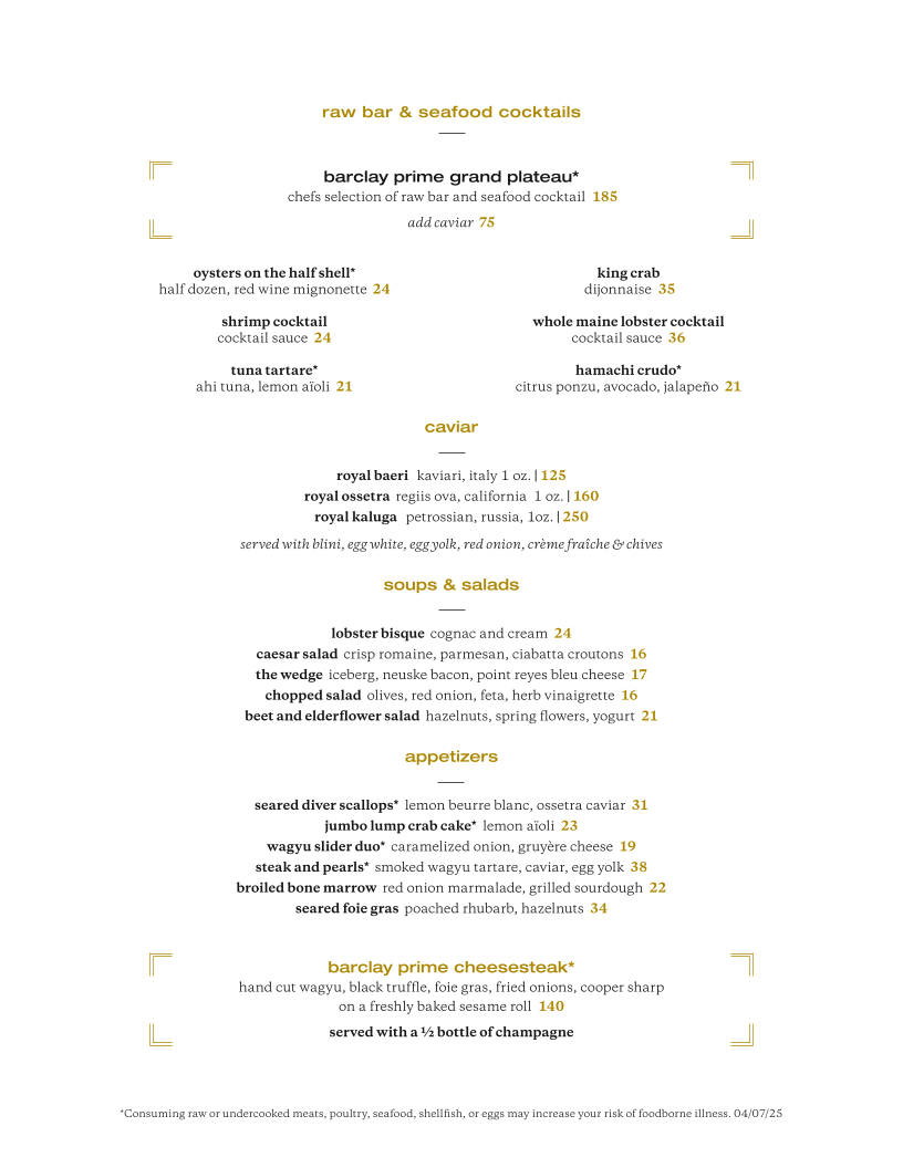 Whether dining in for fine seafood and steak or taking home thoughtfully prepared favorites, Barclay Prime’s menu presents a comforting yet elevated experience. It’s a place to enjoy familiar flavors with an attentive, polished touch that makes everyday moments feel a bit more special.