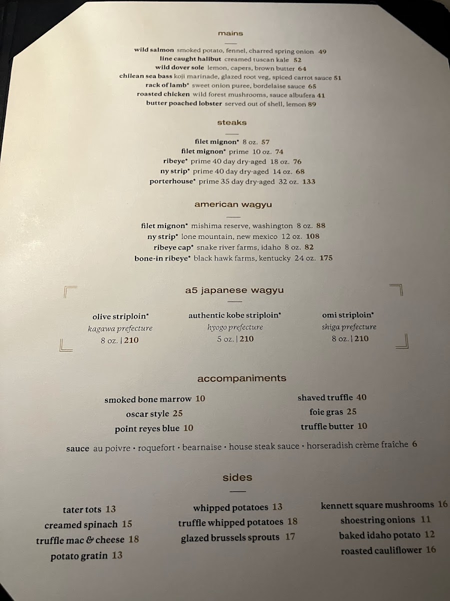 The menu at Barclay Prime offers a refined take on classic American steakhouse fare, blending rich seafood and perfectly cooked steaks with thoughtful, approachable sides. It’s a setting where indulgent bites like Wagyu sliders or the signature Lobster Bisque pair seamlessly with an atmosphere that balances elegance and warmth.
